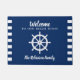 ようこそ私たちのビーチハウスパーソナライズされたにあなたのカスタム家族の名前の入り口の形式。美しユニークいネイビ航海のーブルーにWheel Helmを搭載。