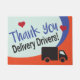 ハートとトラックのデザインを持つドライバに感謝す表現るあなたのパッケージを持って来ている人々に感謝。