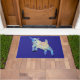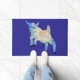 かわいいジャンプベビー豚ヤギイラストレーション。ヤギカラフルの生活を生きる人々のための紫色の背景デザインに青、紫、黄、オレンジで愛らしい農畜芸術。オリジナルのアートワーク:アーティストCatherine Sweetman