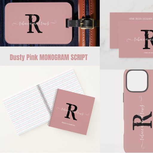 ほこりっぽいエレガントピンクモノグラムスクリプト名イニシャル ノートブックほこりっぽいエレガントピンクモノグラムスクリプト名イニシャル ノートブック (裏面)ほこりっぽいエレガントピンクモノグラムスクリプト名イニシャル ノートブック (内部)