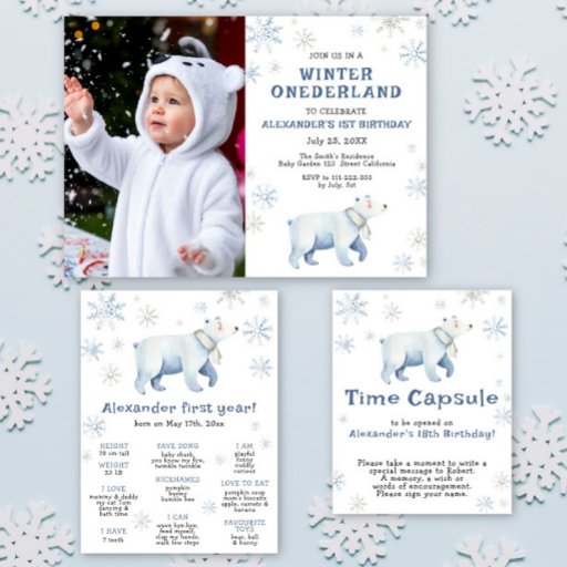 水彩1歳の誕生日タイムカプセルの看板誕生日のタイムカプセル子供の誕生日ウィンターオンデーランド水彩のポーラーベア雪の結晶
