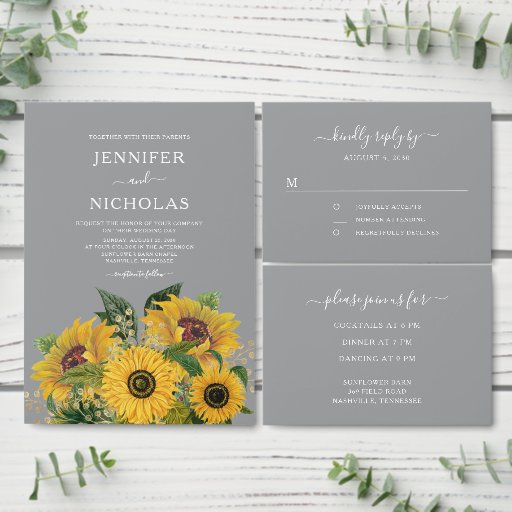 グレイエレガントヒマワリ結婚式招待状