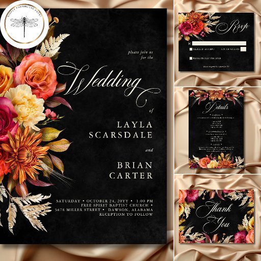 Elegant Black Vibrant Boho Floral Script Weddingデザイン: Kathe Santillo