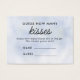 Cloud 9テーマを搭載したブライダルシャワー用の「キス数を推測する」カード。パステルブルーの背景とモダンレタリング、台本の書道が特徴。シックでタイムレスなモダンこのデザイン(マッチする招待状や他のアイテムを含む)は、クラウド9テーマを愛すモダンる花嫁のために素敵だ。
