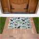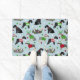 水色の背景に〔雄ジカの〕枝角が散らばったオーナメントの、塩・コショウ・黒と銀色のコートを着たかわいいクリスマス・シュナウザー・衣服・サンアーガイルタ・ハット・・セーター。