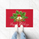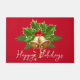 金ゴールドのクリスマスベルと赤い背景のヒイラギ。背景と文字は変更可能。
