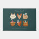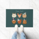 冬のお洒落アクセサリーを着た可愛い猫の手描きイラストレーションをモチーフにしたおもしろいクリスマスドールマット。背景は緑。