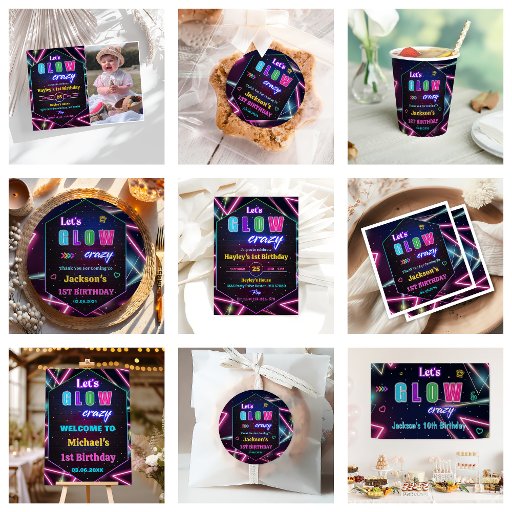 グローネオンライトサンキューバースデーパーティークラシックラウンドステッカー