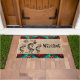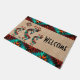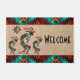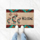 この"種類ユニークの1つ"南西ココペリのDoormatをパーソナライズ!3つのココペリの遊フルートと踊りを日焼け砂岩の背景に太陽の下で…ターコイズの南西に囲ま縁どれ、オレンジとブラック!アーティスト・ケリー・ミラーによるオリジナルアートデザイン。