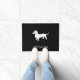 基本的なDachshundデザイン – 白いシルエット、カスタマイズ可能な背景色と文字。あなたの犬の名前または他の任意のメッセージを追加!