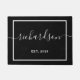 このシンプルトレンディースタイリッシュとドアマットには、の白い手書き文字で姓が書かれ、家族が成立した年、黒い背景に白い幾何モダン学的枠が描かれています。