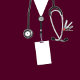 クリエイティブ看護学校卒業招待状マルーン病院のスクラブと聴診器を特集。文字を編集して、看護学校卒業式の招待状または発表を作成する。