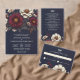 ネイビーブルーとブルゴーニュのフローラ結婚ズ 出欠カード