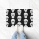 黒い背景色とハロウィーンのスカルのプリントで表示さ幽霊のよく出るれるドアマット。こカスタマイズこのマットや買そのまま。