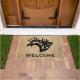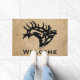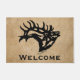 この「種類ユニークの1つ」ブルエルクドアマットをパーソナライズ!ブグリングブル威厳のあるブルエルクブラックシルエット…タンレザーの背景に!オリジナルファインアート絵を描ズバイアーティストKerry Miller.
