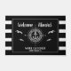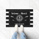 船へようこそ!ボー航海のティング読ドーカスタムマットの文字の第2の行と同様に、いかりと黒と白のとストライプで囲まれた羅針盤で囲まれたのボート名。