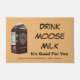 ウィロー・アラスカの世界的に有名で完全に神話のマタヌスカムース乳酪農場からのミルクカートン。「Drink Moose Milk, It's Good For You」というスローガンも登場する。ロゴの画像は、農場で初めて乳製品を使用するマチルダを搾乳する搾乳メイドの手を特徴としている。そこ信じは、ロシアとスウェーデンに少数の大草原がある。ムース牛乳はロシアで商業的に養殖されている。誕生後生まれ2~3時間以内に母親から連れ出され、人々に育てられる農家の子牛。最初のボトル食べ物を与えはミルクの代わりと、後にバ食べ物を与えケットから。動物は人間に付き合う。牛乳は乳脂肪(10%)が多く、固形分(21.5%)が多いロシアの。米ムース牛乳の研究はロシアよりも進んでいない州だが、米ムースは乳中に固形分を更に多く含んでいることを示しているように見える。ムース牛乳は少し塩辛いと言われ、松やトウヒの針のヒントがある。ムース牛乳はロシアで商業的に養殖されている。誕生後生まれ2~3時間以内に母親から連れ出され、人々に育てられる農家の子牛。最初のボトル食べ物を与えはミルクの代わりと、後にバ食べ物を与えケットから。動物は人間に付き合う。乳牛と同様に、短期間後に子牛は母親から取り除かれる。ロシア人は、すぐに子牛が代わりの子牛として自分の代わりとして認識すると言う。この時点で彼らは森にリリースされるが、授乳期間中(通常、9月または10月まで)に搾乳するために毎日の農場を訪問する。冬の間、動物は周囲の森の中を自由に歩く。しかし、彼らは通常あまり迷わないが、木が切られている近くの木くちに時間を費やし食べ物を与え、木材の操作の副産物に過ごす。そして、彼らは農場を毎日のオートミールの配給の場所として、そして彼らの若い人に安全な与え誕生の場所として知っている。1つのロシアのサニトリウムは、病気から回復する救済か、慢性病気をより効果的に管理すると考えて住民にムースミルクを提供する。ムースロシアのミルクは小児胃腸疾患の予防に使えるだろうと勧める研究者もいる。スウェーデンのジュルホルムにあるエルク(ムースはヨーロッパではエルクと呼ばれる)ハウス(エルヘンス・ハス)農場は信じ、世界で唯一のムースチーズの生産者となっている。そのチーズはポンド当たり約500ドルで売れている。Algens Husのレストランはムースチーズ料理を提供している。チーズのプレーンは、パンやビスケット、またはより良い、ムース凍っていムースを持つ。ラズ最高のベリーを添えた。