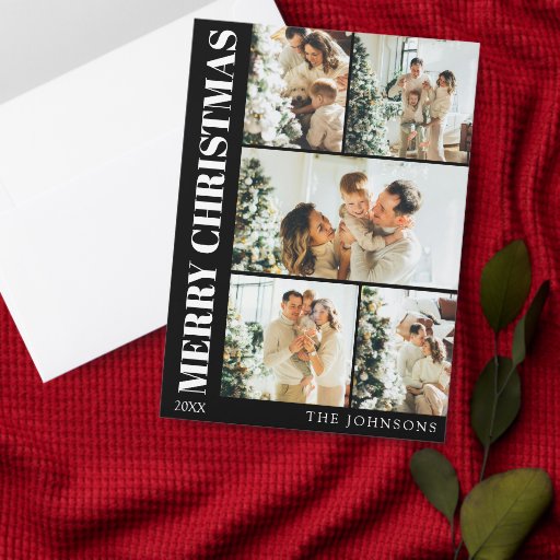モダンエレガントMerry Christmas Family写真 ギフトタグ