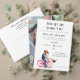 ピンク祝の自転車にカップルの水の色のイラストレーションをフィーチャーするこのロマンチックな婚約招待で車輪の愛。このモダンとカジュアルデザインは屋外または国スタイル婚約パーティに最適だ。名カスタマイズ前、日付、時刻、およびRSVP情報を含む文字。ウィムシーのtouchで新鮮で心のこもった発表を望む人々に理想的。