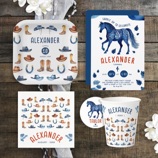 これらの誕生日パーティーの好意バッグは楽しい馬をテーマにしたデザインを備え、男の子と女の子の両方に最適祝で、西部のロデオ誕生日とサドルに彼らの友人を招待する。デザインは、カウボーイ帽子、乗馬ブーツ、暖かい青と茶色の色調の馬蹄類の水色イラストレーションを含む。鮮やかな白い背景を背景に、色合いと柔ら自然かなブラシストロークが魅力的、素朴な雰囲気をよくはしゃぐ作り出す。イラストレーションの下には、カスタマイズ可能な名前と日付の場所モダン、青いスクリプトよくはしゃぐと、クリーンなタイポグラフィでシンプルパーソナライズされた、touchのためのの黒い日付と共に西テーマのおもしろいと新鮮な保のための空間がある。