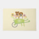 かわいいイラストレーション2匹の犬の春の花でいっぱいの手押し車の中。