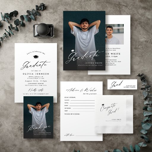 カスタム差出人住所ラベルシックモダンミニマルタイポグラフィ可愛ユニークミニマルお洒落おもしろい卒業差出人住所ラベルモダンシンプルエレガントプロフェッショナル高校の先輩フォーマルクラシック男女兼用坊保手書きの書道グレードキャップブラックとホワイトクエレガントリーチシンプルプト