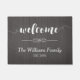 フェイクな木製の背景が付いているドアマット、かわいらしい白人の書道のフォントおよび確立されるあなたの姓および年。