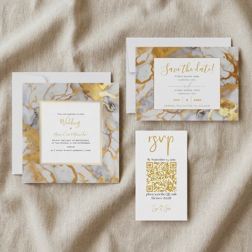 白と金ゴールドの大理石フレームゲスト名座席表 プレイスカード