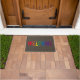 "歓迎"は虹の色で印刷しました。 背景に柔らかいフィルターがあり、色はあなたの好みに変更することができます。