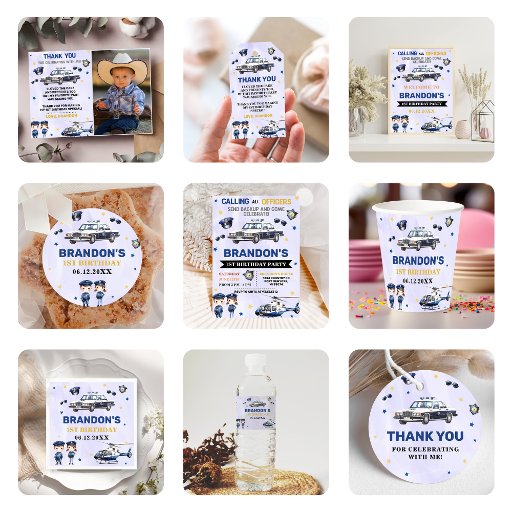 警察官ボーイ3歳の誕生日パーティー 招待状