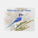 雪の松の木の中の青いカケス ドアマット