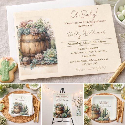 Rustic Succulents & Cacti Baby Shower Party Rangeデザイン: Printable Pics