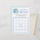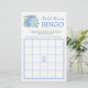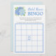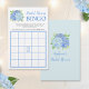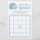 このブライダルシャワービンゴゲームカードは、水色の青いあじさい花を特徴とする。花嫁の名前でカードの背面をパーソナライズ。一致する製品が利用可能。