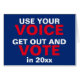 フロント文字:声を使う。出て投票[年テンプレート]。青い赤と白背景のブロック文字。内部文字:私たちの家族からあなたの家族に幸せな休日。必ず地元と国の選挙で投票を行いなさい。投票の数だ!バック文字:レジスタンス向け製品、デザイナーのページへのリンク。