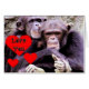 ことわざを持つ赤いハートと2つのチンパンジー中央であなたを愛する。