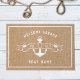 船カスタム名の付いた航海のテーマいかりのロゴデザインを特徴とするデザインのパーソナライズされたウェルカムマット。