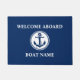 いかり航海のロープ歓迎あなたのボート名ドアマットネイビーブルーと白
