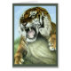 コレクターは大きな猫およびトラの恋人のために梳きます: うなるトラは、彼の犠牲を跳ぶために用意します。