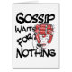 電話で話しているcurlersの赤い毛を搭載する女性のレトロのアートワーク。 "うわさ話待っていません何も"は