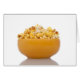 白い背景上の黄色い陶磁器ボールのおいしいポップコーン。