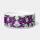 紫が好きなら、きっとあなたの愛犬も好きなはず。レトロなテイストのパープル、ホワイト、ブラックの葉っぱのプリントがかわいい、名入れができるペットボウルです。2つのサイズからお選びください。