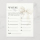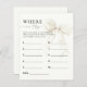 エレガントなスクリプトタイポグラフィーが施されたスタイリッシュなホワイトボウの「どこで撮った?」ブライダルシャワーゲームカードで、さわやかでミニマルな背景が特徴です。ブライダルシャワー、ウェディングシャワー、またはバチェロレッテパーティーに、特にボウをテーマにしたものやブラック&ホワイトのデザインのイベントに、楽しくてインタラクティブな瞬間を追加するのに最適です。ゲストは、カップルの写真から場所を推測し、笑いや思い出を作ります。同じおしゃれなホワイトボウのデザインの招待状、装飾、ステーショナリーとコーディネートできます。