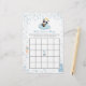 このとってもかわいいベイビーシャワービンゴカードは、雲に浮かぶパンダくんがぬいぐるみのウサギを持ち、エレガントなスクリプトと現代的な文体であなたの詳細を記入できるようになっています。裏面はパンダくんが星の風船を持っています。「パーソナライズ」をクリックして簡単にカスタマイズできます。