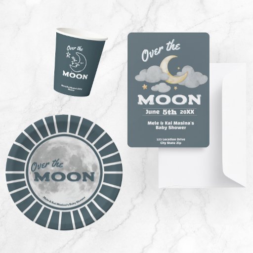 おっと。ムーンブルーベビーシャワーカスタム招待状 招待状