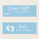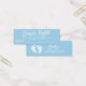 軽いパステルモダンブルーのブラシストロークのスクリプモダントに美しい青と白のおむつラッフルチケット。可愛いベビーの足 – 彼らをパーソナライズし、背面にベビーの名前を追加。これらを招待状、数量100のための安い価格、完璧なサイズ3"x 1"に追加。任意の男の赤ちゃんベイビーシャワーパーティーテーマに最適。青い配色の色合いに一致する。