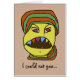 漫画のキャラクターが見栄えすぎない。黄色の肌、紫色の目、カラフル歯。ブラックプリント「食べ私は...」カード内の文字: "...または私はちょうどHELLOと言うことができる!"。文字は簡単に行えカスタマイズる。