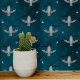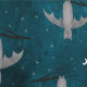 おもしろいの小さなこうもりぶら下がったは、月明かりの下で枝から深いティール(緑がかった色)の緑の背景にある。オリジナルアートby Nic Squirrell.