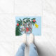 白灰色の猫ぶら下がったがクリスマスツリーの頂上から離れている。
