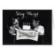 おもしろいな滞在のお誕生日ケーキ、風変わりなカスタマイズ可能が付いているテーブルで子猫猫の子ネコの上で服を着るヒップスターの風変わりな白黒ヴィンテージの写真はあなた専有物を加えましたり/前部および内部の風変りの挨拶状のあなた自身の文字を作成します。