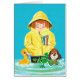 芸術家: レインコートを持つジャックの織工|の女の子はカエル、犬およびアヒルが付いている水溜に立ちます